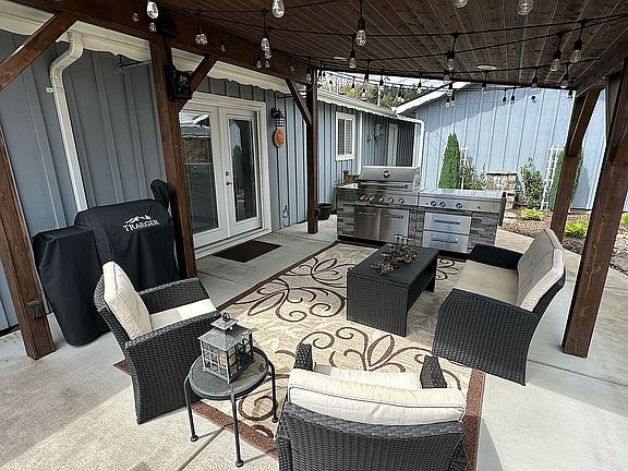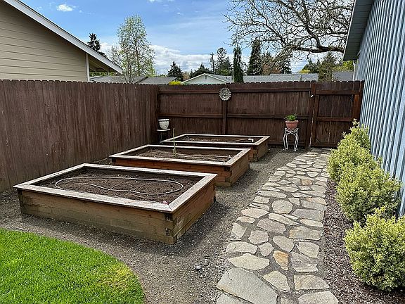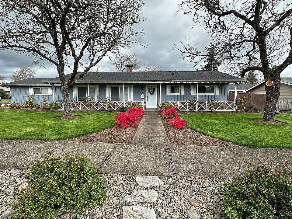 Beautiful single level home on a spacious corner lot. Completely remodeled and landscaped in 2019 with over $150,000 in improvements. Living Space plus garages/shop = 2196 sq. ft. The home has 3 bedrooms plus an office which could be used as a 4th bedroom. Open floor plan with beautifully restored hard wood floors throughout the house. Craftsman style wide baseboards, crown molding and window/door moldings throughout. New A/C, heat pump and electric water heater all included in the remodel. Kitchen is spacious with upgraded appliances, cabinets and quartz countertops. Both bathrooms were completely redone with marble counter tops and beautiful tiled showers. Living room has a beautiful fireplace that makes for cozy evenings. Plantation shutters are throughout the house. Original windows were replaced with insulated windows throughout the house. There are French doors that lead from the office to the gorgeous covered patio area. Backyard is completely landscaped with large patio space for outdoor entertaining, soothing custom built fountain, low maintenance plants, 3 large garden beds and a custom built storage shed. Custom built stone pathways located in the front of the house and in the backyard. Landscaping includes a custom designed dry creek bed that adds beauty to the backyard. The 2 car garage is attached to the house and a detached oversized shop/3rd car garage was added in 2019 complete with a new driveway for all garages. The front and backyards have an irrigation system that also includes irrigation to the garden and flower beds. New fence was installed during the remodel in 2019. New roof and exterior house painting completed in 2012. Home is located in a quiet neighborhood with wide streets. This house is a must see if you are looking for a wonderful well maintained home that is move-in ready! Call or email to set up an appointment to view this wonderful home. Shown by appointment only.