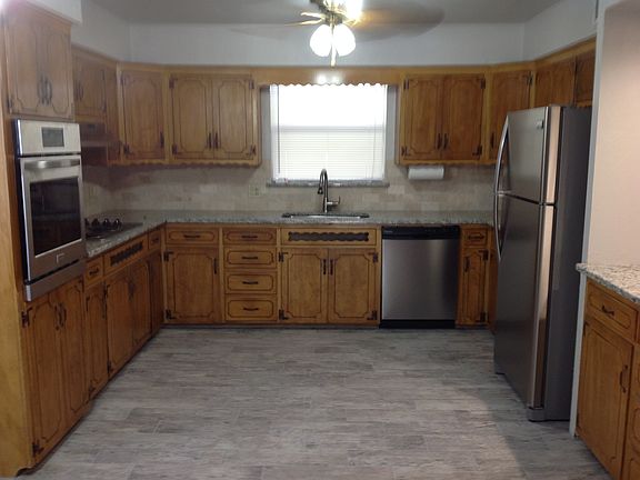 2 bedroom, 2 bathroom, 2 car garage with openers, Central heat & air, Remodeled kitchen with granite counter tops, new stainless steel appliances, Laundry room with new washer&dryer, 8x10 basement/storm shelter, 18x20 add-on patio porch, lawn care provided, non smoking $500 pet deposit, owner provides lawn care .