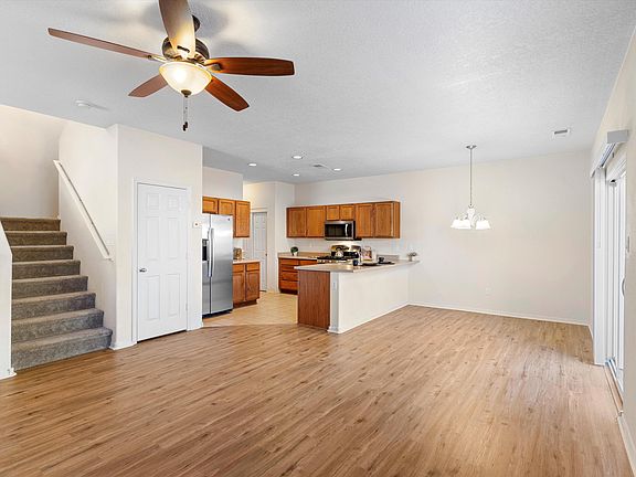 Welcome Home in the Astante Villas gated community at Cabezon! Close to walking trails, neighborhood parks, and the community pool. Features an open floor-plan, half bath downstairs for convenience, stainless steel appliances, and washer/dryer does convey! Beautiful end lot with larger yard. Come see this move in ready townhome today, it will not last long!