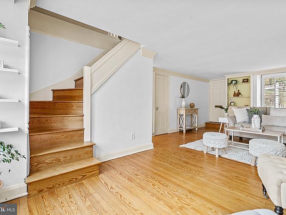 Historic charm with modern updates in this 3-bedroom, 2-bath home in historic Dickeyville. This home boasts rare historic details including deep window sills, wood floors throughout, a picket fence, and an entire first floor wall of French doors with sunny Southeastern exposure. Walk out onto the expansive deck from either the living or dining room and enjoy the views and sound of the Gwynn Falls. The sprawling backyard with parking pad extends directly to the waterfall, surrounding park and trail system. Modern updates strike the perfect balance including gourmet kitchen, warm water bidet, and ground-level guest suite. Built in 1840 as the original mill office and now with over 2,100 square feet of living space, this gem in the heart of the village is ready for you to be the next part of its rich history.