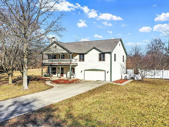 If you desire acreage and privacy, but still want the conveniences of the city, THIS IS THE ONE FOR YOU!!! This beautiful 4BR has it all! Massive open concept main level, beautiful hardwood flooring, newer stainless steel appliances, huge office with elegant French doors and custom built-ins, and a large laundry room with hookups for TWO sets of washers and dryers (one set will remain with the home)! The two story hearth room with wood burning fireplace ensures cozy, warm days during the cold Indiana winters. The heated pool, hot tub, huge screened in patio, expansive deck, and ample pool patio provide endless summer fun and plenty of space for outdoor entertaining! The hand-made custom staircase leads you to the enormous primary suite complete with sitting room, huge walk-in closet, large ensuite, and French doors to your own private balcony overlooking you backyard oasis! If the morning sun isn't your thing, don't worry! You can enjoy your morning coffee on the west facing balcony just across the landing. The spacious additional bedrooms are each equipped with large walk-in closets as well! Surrounded by 3 acres of peace and quiet, you won't even realize you're conveniently located just 7 minutes from downtown, 5 min from 465, and just minutes away from all the restaurants and shops you could want! Must see!!!!
