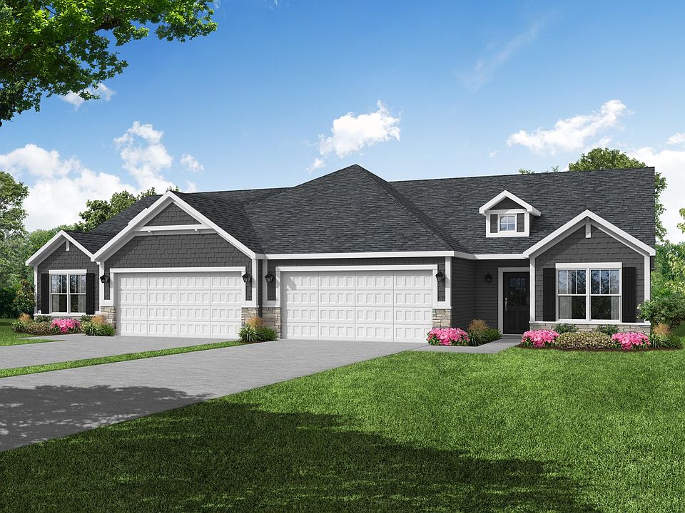 This maintenance free home is cozy and inviting. The open concept layout feels spacious. This home is filled with upgrades that include recessed can lighting in great room, bright and open kitchen with an island and pendant lights, and a flex room space for home office or relaxing den. Owner's bathroom has double sink vanity and step in shower, ceramic flooring. The kitchen is finished with painted white maple cabinets and a stainless appliance package. Laundry has included washer and gas dryer. Wood laminate flooring and upgraded carpet throughout the home.