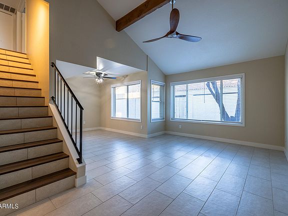 Fantastic split 3 bed 3 bath was just remodeled. New floors throughout, fresh paint, ceiling fans, lighting, backsplash and more. Functional floorpan features 2 bedrooms each with own full bath upstairs and additional bedroom and bathroom on the main level. Vaulted ceilings create an open floorpan with a lot of natural light. Spacious patio and low maintenance back yard are perfect for entertaining. Great location near I17, very convenient to shopping, dining and more. *Exterior of Building Just Freshly Painted* Come and see!