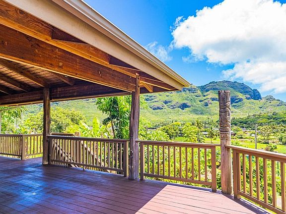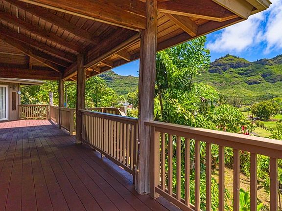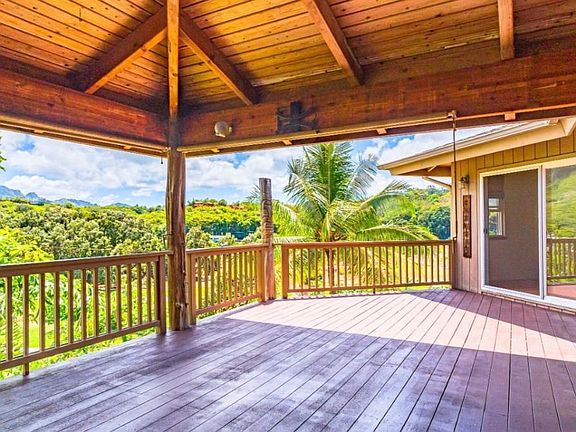 This beautiful hilltop property offers expansive mountain views over the Haupu Mountains and Niumalu. Upstairs: open beam ceiling living room, two bedrooms located for maximum privacy on separate sides of the house Large covered lanai overlooking the mountains near small boat harbor allows to enjoy outdoor living all year around The well-maintained grounds offer lush apple banana trees, malama and avocado. Other features include Satillo Mexican Tile though-out the home, Travertine kitchen counter with bar, custom bath cabinetry, a workshop, Anderson glass slider door entry way, Solid Knotty Pine interior door, master bath with walk-in glass block shower and window. Ohia Poles from Big Island Sold As Is. Downstairs spacious room with separate entrance currently used as a workshop may become an office or art studio Close to all shopping in Lihue, restaurants, airport, Kalapaki beach with beautiful promenade and within walking distance to small boat harbor