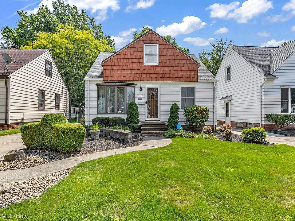Get ready to be wowed by this charming bungalow in Euclid! With 3 bedrooms plus an office/media room, this spacious home has plenty to offer! You'll love cooking in the nice kitchen, complete with updated appliances, a tile backsplash, and tons of storage space! 1 full and 1 half bathrooms have both been thoughtfully updated! Living room with large bay window and lots of natural light plus breakfast/morning room overlooking the back yard! Finished lower level recreational room perfect for all season entertaining! Beautifully landscaped yard with covered concrete patio and beautiful paver stone walkway! 1.5 car detached garage with loft and electrical provides ample parking and storage, plus could be work/tool bench. Move in ready, come see today!