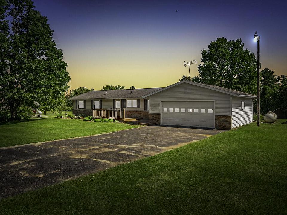 Beautiful ranch in the highly sought Handy Addition with a gorgeous nearly one acre lot! The fresh kitchen welcomes you home with premium Calacatta Laza quartz countertops, brand new appliances, and spacious island to gather around! Lifeproof vinyl plank throughout, main level laundry, and well sized bedrooms. West facing bay window adorns a country backyard setting. Bar/rec area offers a perfect entertainment room with cabinets, bar top, countertop, and dedicated wine cooler space. Additional laundry hookups in basement with plenty storage. Exterior boasts vinyl windows and siding with brand new central air unit. Did we mention the 40x45 additional shed!? Perfect space to store toys, camper, RV, utilize as a workshop or business!