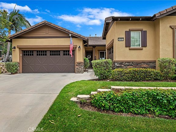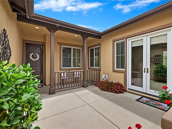 Welcome to Trilogy @ Glen Ivy! The Inland Empire's premiere 55+ community. It is private, exclusive and gated. Located at the base of the Cleveland National Forest and surrounded by the Glen Ivy Golf Course. This Palomar model features 3 bedrooms, 3 full baths plus a 1/2 bath at the entry. All 3 garage doors are newer. They are the pre-painted insulated metal with newer openers. Separate casita with private French door entry is the 3rd bedroom. Abundant natural light illuminates interiors while windows to the outdoors highlight the outstanding views! 180 degree view with no obstructions. Large covered patio and extended areas expands opportunities for entertaining & enjoying the California sunshine. A lovely Flagstone walkway leads to a secret garden abundant with all kinds of fruit trees. Newer carpet, high ceilings & a wet bar adorn the great room which features a beautiful newer stacked stone fireplace with a raised hearth. Newer Kitchen Aid stainless steel appliances package and double ovens. Beautiful granite counters. Island breakfast bar with plenty of seating space is open to the great room. There is a an ample nook space as well. The large flex room can be used for a variety of purposes, whatever fits your lifestyle! Coveted front courtyard and stone exterior. Scrumptious Master suite has coffered ceilings, sitting area and a private French door to the back patio. Master bath has a jetted soaker tub, separate walk in shower, dual vanities and a sit down vanity. Enjoy the walk in closet! Recently upgraded heating and cooling system which is very quiet and efficient. Inside laundry room with storage, counter space & a sink