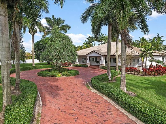 Located in Redland, Miami Dade's Agriculture community, sits a custom 2009 gentleman's 5 acre country estate with a tropical flair. She's a big girl with 9000 sq. ft. under roof and 5500 under air, tastefully appointed, designed & built to last generations. No detail was spared on this 4/5 w/ bonus room (current use is an office). The suites & living areas open onto 230 linear ft veranda that wraps around this beauty and provides space for the chef's summer kitchen/bar with impact W & D allowing the beauty of the outside in. Additional exterior features include a detached finished a/c garage w 2nd level, a water treatment sys, 48kw generator w 1000lb propane, irrigated longan grove w asst tropical fruit for personal use, barn w/ storage & loft. fenced and cross fenced. security in place