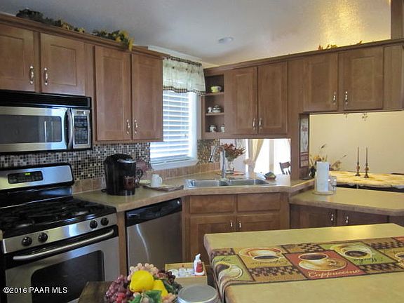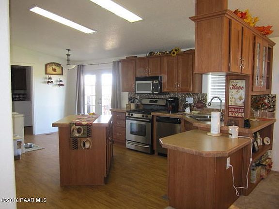 This home is immaculate and quality built! Split floor plan, master features another adjoining room that could be an office, den or hobby room. Large open floor plan, island in kitchen, tile accents on all counters. French doors to the back yard covered porch. The views are amazing from this porch! 2 car detached garage. Owners worked in the Grand Canyon until 2013, then moved in the home. Virtually almost new home on a stem wall.