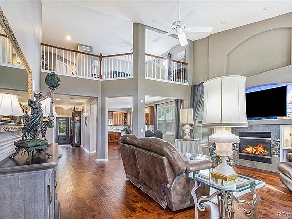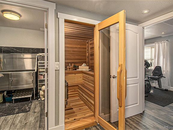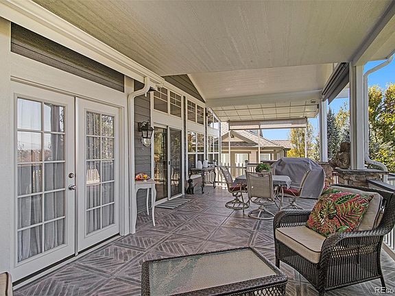 Wow! This home is a show stopper and entertainer's dream! It features 2 full Kitchens, 2 Laundry Rooms, Elevator, Sauna, 2 huge waterproof Patios stubbed w/gas lines, & So much more!! A classic home where practicality and elegance meet! This UNIQUE pristine home has a MAIN FLOOR PRIMARY BEDROOM, with a 5-piece ensuite, walk-in closet and door to the patio. The exterior has fresh paint, and a wrought iron enclosed front porch, with an electronic secured gate, and beautiful landscaping. The front study is equipped with an elevator to access the lower level into a bedroom or gym, and right next to the brand-new Cedar Sauna! After a workout, shower in the stunning full bath. There is a bonus room currently used as a pet grooming station but would make a great wine cellar or additional storage. This amazing walk-out basement features a cozy sitting area with a modern fireplace, entertainment space, a large kitchen fully equipped with Double Ovens, Gas Cooktop, Dishwasher, Hood, Microwave & Pantry! The entire lower level is LVP flooring, high end finishes w/crown molding and tons of custom lighting. There is an additional laundry room and 2nd bedroom with a walk-in closet. Be sure to check behind every door for the added surprise of spacious finished storage! The basement opens to a large private covered patio with great views. The upper level of the home is perfect for the kids with 2 additional bedrooms, a full bath and a nice large loft to lounge. There is no better place to enjoy the outdoors than in Colorado! Sit and watch the sunset over the mountains or the fireworks on this huge maintenance free custom patio! It has been upgraded with luxurious ceramic flooring and a vaulted roof w/powered sunshades, making it feel like a whole other room. The yard is professionally landscaped with trees strategically placed for privacy. This is truly a MUST SEE property! Be sure to check out the park and superb clubhouse just around the corner and all within walking distance.