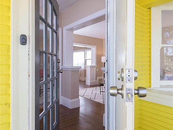 Sweet home in the Havenscourt neighborhood boasts a spacious living room and dining room with a vibrantly colored, updated kitchen. This split-level home features 2 bedrooms with connecting smaller rooms that overlook the backyard and 2 full baths. The inside has recently been painted, hardwood floors throughout have been beautifully refinished. Laundry room and half bath in the basement area. Mature trees and flowering cacti in the backyard offer extra privacy. The long driveway leads to detached garage.