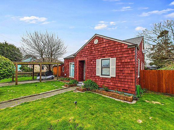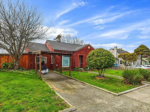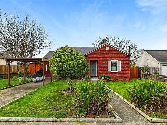 This charming California bungalow is cute and clean and ready to move into! Offering original hard wood floors, a breakfast bar to the charming kitchen that looks out to a quaint deck and oversized green grass yard! A converted garage provides another bedroom space as well as a cozy attic room above! An attached covered area for storage and tools! Newer Roof and Fresh Paint, as well as a high efficiency heater are a few extra features!!