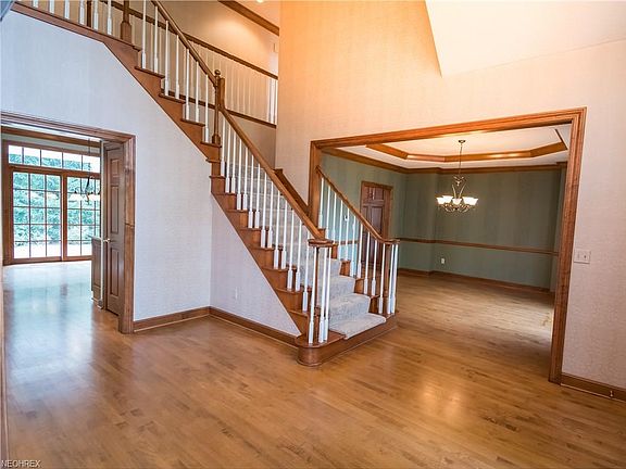 A phenomenal quality built 2 story situated on Raintree Golf Course w/tree lined lot having 4 bedrooms, 4 full baths, 3392SF plus 1200SF in finished lower level*Throughout home are beautiful windows, many w/transom, huge Palladium in foyer, 9' ceilings 1st floor, double crown molding (1st floor, except living room & upper hall), wood floors (foyer, kitchen, dining, hall & half bath), poplar trim & 6 panel doors plus a split stair case leading from foyer & kitchen*1st floor with sunken great room & brick gas log fireplace; formal dining with tray ceiling; living room; eat in kitchen with newer granite, Schrock maple cabinetry, built in china cabinet, desk, pantry, island, bay window, fully applianced & slider leading to brick patio; office or 5th bedroom; full bath; laundry w/ cabinet & sink (area for built inironing board)* 2nd floor with spacious master suite with walk in closet, double vanity, jetted tub, shower with 2 shower heads & private lav; 3 additional bedrooms (2 w/walk in closets); guest bath* (New carpet- steps, hall, master bedroom & 2 guest bedrooms approx. 6/2017)* Lower level rec room with bar, built in desk & book shelves; exercise room with mirrored wall; office; full bath* Other features include 3 car side load garage, hardie board (2002) & brick siding; shingles (9/2017); security system; central air approx. 8 yrs.; exterior accent lighting; built in speakers (great rm, office, master suite & rec rm)* Home warranty provided* Unbelievable value!