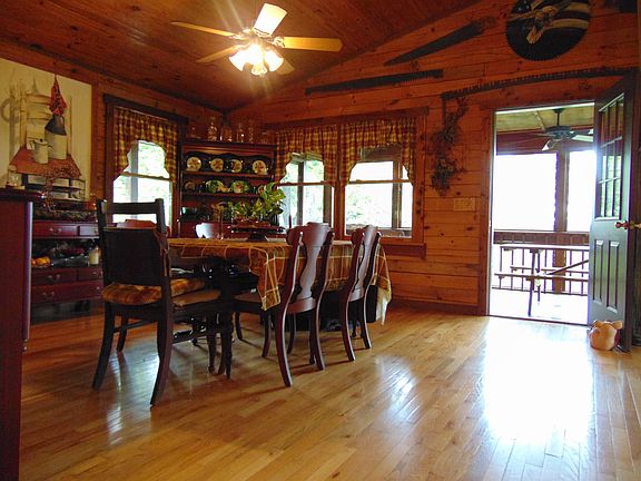 If you are looking for a LOG HOME you found it, it has everything a person could only dream of owning, peace and quiet with a mountain view, with lots of privacy. A wrap around deck that has a screened in porch for extra living space, in the spring and summer so that you can watch the wildlife around you. Hang a porch swing on the porch and watch the sun set. This home has a whole house generator, that run on propane, there is a RV hook up with plenty of space to park the RV. There is a grape habor that has fresh grapes on the vines. You will have lots of room in the yard to do gardening, and plenty of space for watching the deer. The family room has a gas fireplace for those cold winter nights. 3 Bedrooms and 2 full baths with a office, that could be used as a 4 bedroom.
