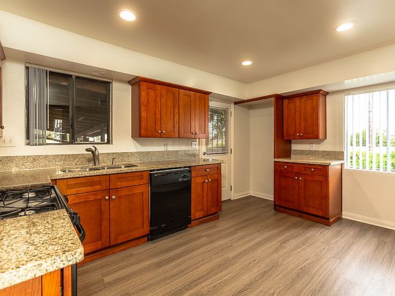Beautiful house feature 4 beds 2 baths located in quiet neighborhood. Newly renovated with new paints and hardwood flooring throughout. Large master with his & her sinks, granite tops, and 3 other spacious rooms. Property has direct access from Kitchen and Hallway to large backyard with covered patio, and a detached 2 car garage.