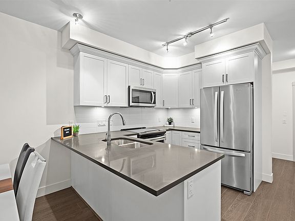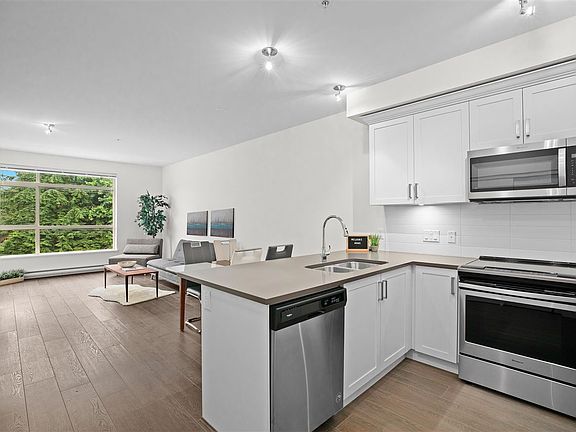 Lumiere welcomes you home. This brand new development is situated in the heart of Downtown Port Coquitlam. A spacious and well laid out 1 bedroom + den and 1 bathroom unit. Stainless appliances, a kitchen bar and quartz counter tops and white shaker cabinetry w/ under mounted lighting. 9 foot ceilings with 10 foot ceilings in the living room allowing for a spacious and bright feel. 12 mm beautiful laminate flooring with TJI floor system. Roughed in central vacuum system, Smart Thermostat. A large covered balcony allowing to enjoy outdoor entertaining year round. Close to transit, schools and Westcoast Express and walking distance to Gates Park. Pet and rental friendly building. A large recreation room with outdoor space!!! This is a smart investment you don't want to miss out on.