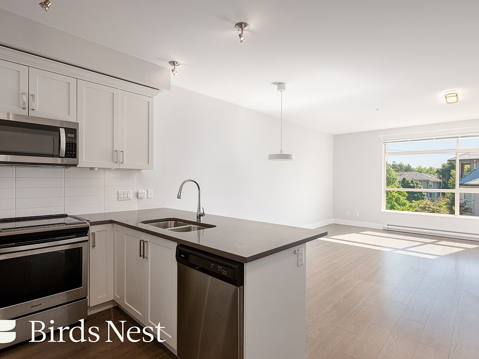 This listing is presented by Birds Nest Properties. The Lumiere 2436 Kelly Avenue, Port Coquitlam 3rd Floor Condo 2 Bedrooms 2 Bathrooms 1 Parking Stall No Storage Locker 922 sq ft Unfurnished Corner Unit Open-Concept In-Suite Laundry Steps to Parks Great Schools Pets welcome! Welcome home to The Lumiere, nestled in the heart of the Port Coquitlam neighbourhood. This thoughtfully designed open-concept condo features laminate flooring, soaring 9-foot ceilings, and floor-to-ceiling windows that bathe the interior in natural light. The generous 140 sq ft balcony extends your living space outdoors, offering serene south-facing views of the tree-lined neighborhood a perfect setting for a morning coffee. The gourmet kitchen is a chef's dream, offering custom shaker-style cabinetry, quartz countertops, and premium stainless steel appliances. Designed for additional ease of use, the home also offers a roughed-in central vacuum and a smart thermostat, ensuring year-round comfort. Located in the heart of Port Coquitlam, this area offers a quiet and relaxed neighbourhood, steps away from gorgeous parks, great schools, and cafes and restaurants. Explore Coquitlam's natural surroundings with a stroll through Lions Park or Lafarge Lake Park each offering the perfect setting for a beautiful day outdoors. Families will appreciate being within the catchment of highly regarded schools, such as Central Community Elementary, Ecole Pitt River Middle, and French Immersion. Gates Park features a playground and is nearby to the Port Coquitlam Community Centre, offering a variety of programs and activities for all ages. For public transportation, the Port Coquitlam Skytrain Station is a 15-minute walk away. Please note: Leases are a minimum of a one-year fixed lease. Strata corporations may charge move-in/move-out fees, which are the direct responsibility of the tenant. Minimum 1yr lease required. Tenants pay for all utilities. No smoking.