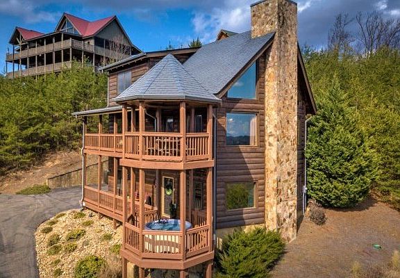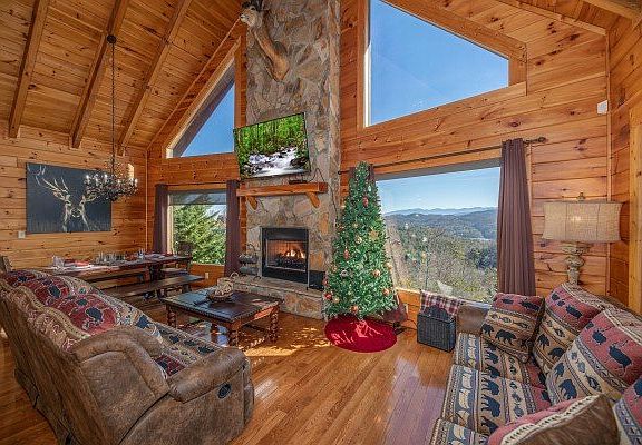 ***Gross rent projections in the mid 70s. Recently Updated. Enjoy amazing views from this updated luxury cabin with 2 master suites and a bunk room for the kids. Relax in your new hot tub or drink your morning coffee on the 2 level turret-style deck. The grand living room with cathedral ceiling and fireplace connects to the open concept kitchen with upgraded granite counters and stainless steel appliances. Relax by the fireplace with your guests while the kids are gaming downstairs. The cabin is located in the gated 4th phase of Cedar Falls and includes access to the community pool. Many recent updates including: 2 65 inch smart TVs, New hot tub, all new beds, mattresses and furniture, New hardwood in bedrooms, stairs and lower level, no carpet! new tile