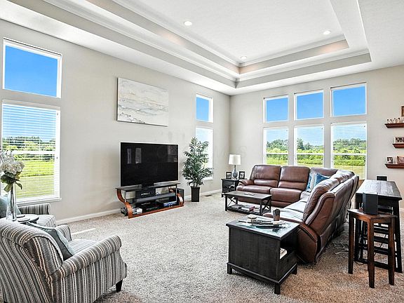 Step inside to an open floor plan that perfectly balances elegance and comfort. The vaulted great room is a showstopper—filled with natural light and framed by stunning views of the surrounding countryside. The gourmet kitchen is built for both everyday living and entertaining, featuring quartz countertops, a large island, soft-close drawers, pull-out shelves, stainless steel appliances, and a walk-in pantry.