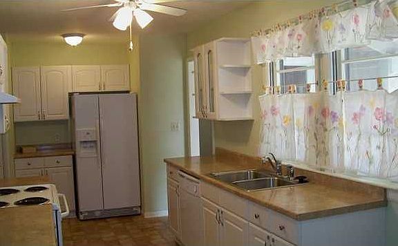 Kitchen features newer vinyl flooring, lighting and countertops, eating space in kitchen as well as a formal dining room. Newer decor colors on wall, patio door opens to a large fenced yard. Covered patio area side of garage.