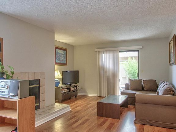 This complex, Village North Lagoon, is well-kept, and offers two pools. The unit itself is downstairs, clean, well-maintained and has engineered flooring in most of the unit. There is a dining area off the kitchen, an inside laundry area, a fireplace, and a spacious, private patio. Stove and heating are gas fueled. The unit is well-located, convenient and easily maintained, has one covered parking spot, and has the use of one open, uncovered space. This unit faces Russell Road. Pet restrictions apply.