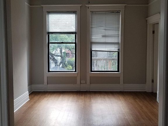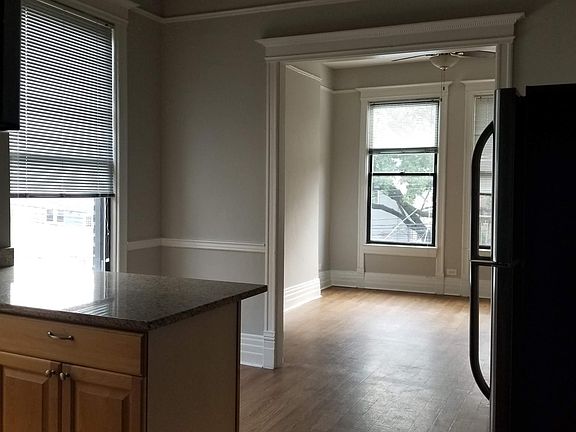 Available 5/1 or earlier. Great Logan Square 2-bedroom 1 bath apartment. Raised first floor rear. Large eat-in kitchen with counter dining space for 2. Stainless steel appliances and sunny windows. Shared laundry in basement. Great location with easy access to Fullerton and Logan Blvd. No dogs. Cats ok with pet fee. Owner pays for water and garbage. Tenant responsible for electric and gas. $425 per person move-in fee. Cat fee.