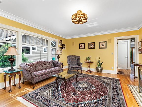 OPEN HOUSE, Sunday Aug 13, 11 am- 1pm. Desirable, Classic Alameda. Custom features make this one stand out. Gourmet kitchen with custom granite counters, custom designed, granite sink, & details that glow and reflect the superb aquarium feature. Easy on the feet cork floors, and peninsula with induction cook top, grill and deep fryer for any cook who wants to try it all! Living room features include custom tile fireplace surround, lovely glass entry door, hardwood floors & double french doors to the formal dining room with original mirrored buffet and glass front cabinets. Currently used as a tv and sitting room the main floor back bedroom features access to back patio. From this room, access the original sleeping porch w/ windows that drop into the walls (never used in years or by current owner, not known if function). Custom spa bath on main features heated floors and jetted tub. With a bit of creativity and updating, the 2nd floor bedroom/bath could easily become a lovely retreat and primary suite. Unfinished basement has outside door with potential access, cool storage room for wine or an old fashioned root cellar, features a dog washing station and small tool bench. Rare two car detached garage and private patio are just two more reasons to put this one on a list to view. [Home Energy Score = 1. HES Report at https://rpt.greenbuildingregistry.com/hes/OR10219549]