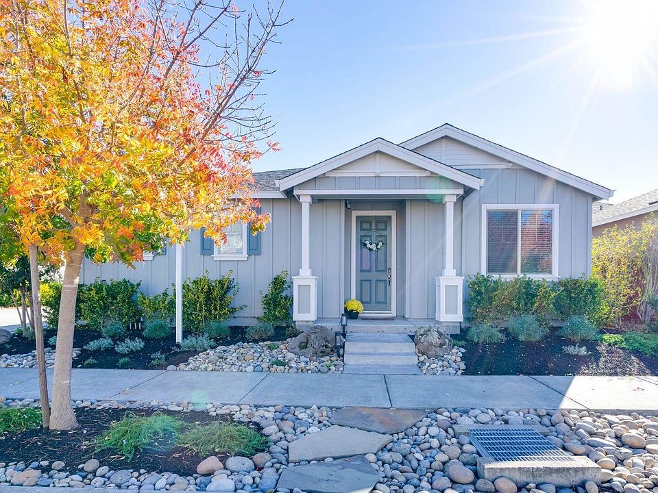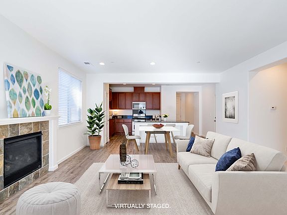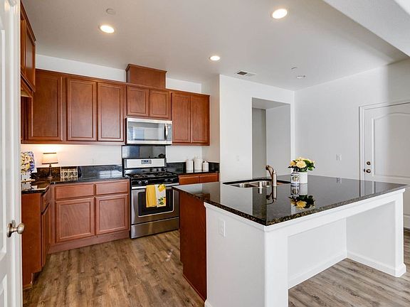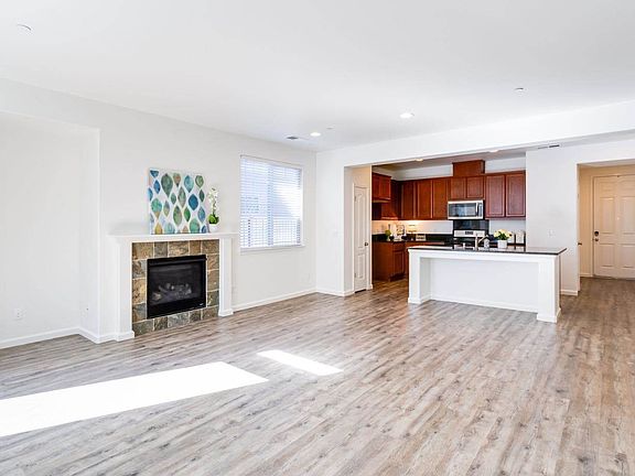 Great starter single story living in this newer home built in 2015. Builder upgrades include the darker stain cabinetry in the kitchen, primary bath shower surround and counter tops, slate tile on the gas fireplace. Move in ready home features the following updates in 2022: laminate flooring, brand new carpeting. new interior paint and exterior painted. Great room features oversize eating island with granite counter tops, pantry and gas range. Gas fireplace with slate tile surround warms up the great room on a chilly day plus AC to cool you on hot days. Primary bedroom suite is sunny and bright. Primary shower features Venetian Stone Slab surround. Dual vanity sink with granite countertops and walk in closet with new carpeting. The front bedroom makes a great office or guest room. Easy care backyard has fresh bark and is open to your imagination. Front yard professionally landscaped the spring of 2022. Laundry closet with storage is located inside. Two car garage with built in storage plus additional shelving conveys. Close to nearby Peterson Park and easy access to transportation and shopping.