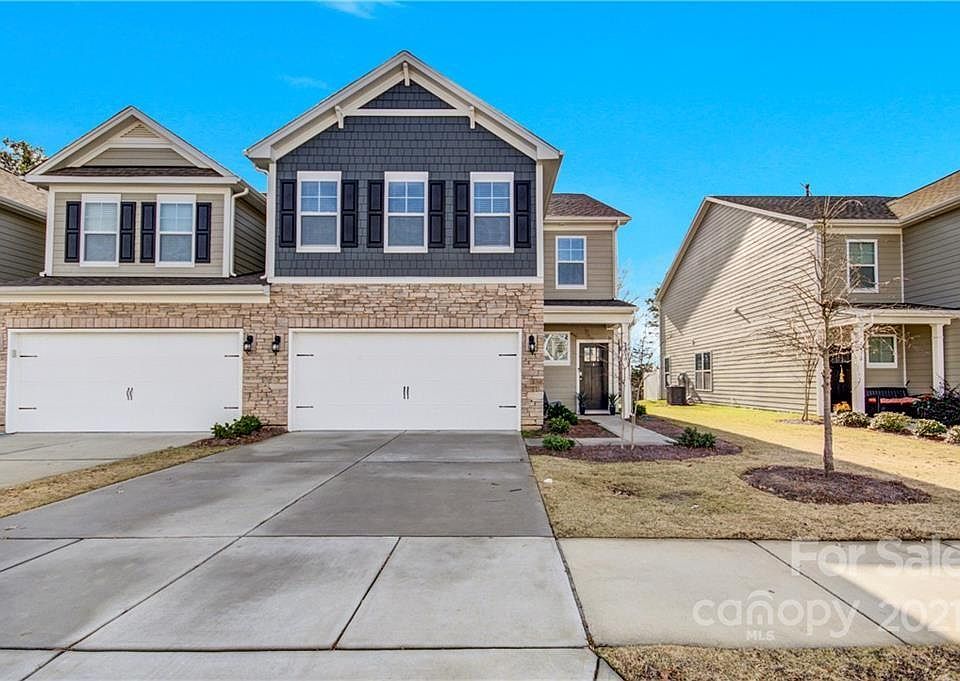This spacious 2,700 sq ft, north-facing end-unit home is available for rent in a peaceful, family-friendly 'Forest Grove' community. Featuring 4 bedrooms and 3 bathrooms, including a main-level bedroom and a full-bath, this home offers plenty of room for families and guests. The large, open kitchen is a highlight, with granite countertops, a double sink, and a huge island perfect for cooking and entertaining. The living room is flooded with natural light throughout the day, thanks to its end-unit location. Outside, enjoy a private, spacious patio that opens up to a serene, treed area, offering a peaceful retreat. Upstairs, you'll find a generous master suite with a luxurious en-suite bathroom, a separate shower and tub, and a large walk-in closet. The upstairs also features a loft ideal for entertainment or gaming, as well as two additional bedrooms and a full bath. The home includes a 2-car garage with a 240V outlet for electric vehicle charging, metal storage racks, and a generously sized attic for seasonal storage. The HOA maintains the entire lawn, so you can enjoy a hassle-free yard. The community offers a kids' playground and a swimming pool, making it perfect for families. Located just minutes from I-77, shopping, dining, and only 20 miles from both uptown Charlotte and the airport, this home provides the best of suburban living with easy access to the city. The area is also known for its highly-rated schools, making it a great choice for families. Renter pays for Electricity, Gas and Water. Owner pays HOA.