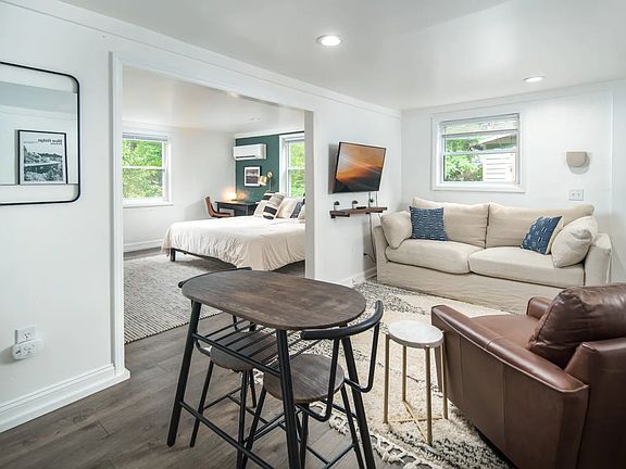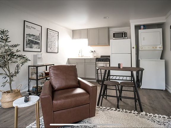 Studio apartment with a great Blowing Rock location! Furnished and Utilities and Internet included! 4 mins to Main St. Blowing Rock, 3 mins to Broyhill Equestrian Preserve, 1 min to the BR Parkway, and less than a min to Westglow Spa. Some of the best trails that the High Country has to offer only minutes away. Bright, airy space offers an open concept design with large windows. Living room space with small kitchen, washer and dryer lead into the bedroom space with a king size bed. Owner pays for internet and electric. Other utilities such as cable tv would need to be arranged by tenant. This apartment is situated on the lower right of a 3 apartment home. Easy parking off a state maintained road, 1 parking spot goes with the apartment, additional guest spots are shared. Apartment is offered fully furnished and move-in ready.
