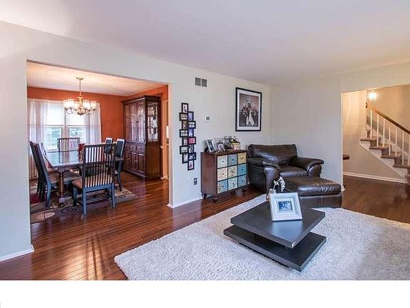 Beautiful home at an expectional value, come and tour this 4 bed 2.1 bath home conveniently located near shopping, restaurants, and all major roads. Upon entering the home you will notice the beautiful Brazilian cherry hardwood flooring that is carried out through the spacious living and dining rooms. The kitchen located just off the dining room is bright and neutral with an abundance of wood cabinetry, corian countertops, and a center island with extra seating. Sliding glass door in the breakfast nook opens to a large level rear fenced in yard with freshly painted deck and pavers patio perfect for outdoor recreation or entertaining. The family room opens to the kitchen with a floor to ceiling brick fireplace. Master bedroom offers a private bath and his and her closets. Three additional bedrooms and hall bath with wood cabinetry finishes off the second floor. The basement was recently waterproofed and finished to include a multi-purpose space with a neutral color scheme. The basement offers plenty of possibilities with a living space, office area to include counter space with seating, laundry area, plus storage and shelving. Don't miss this opportunity to move right in and not do a thing.