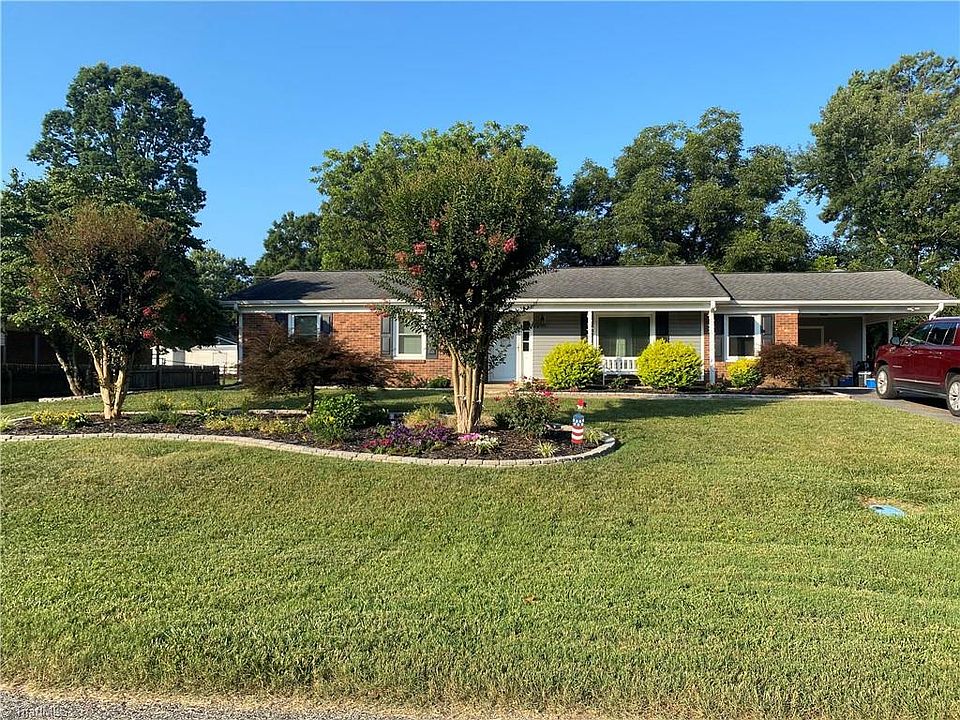 Beautiful brick ranch in Canterbury Estates. Home offers den w/ fireplace that is open to the kitchen, great for entertaining, currently being used as a dining room. This home boasts a large formal living room with 2 ceiling fans & new LED can lighting which has also been put in the kitchen, dining room and hallway. The yard is nice and flat & beautifully landscaped. Relax in the fenced backyard under the 10x12 gazebo, or roast marshmallows around the stone firepit. Storage building included. 100% USDA eligible.