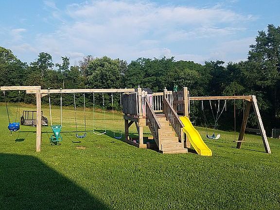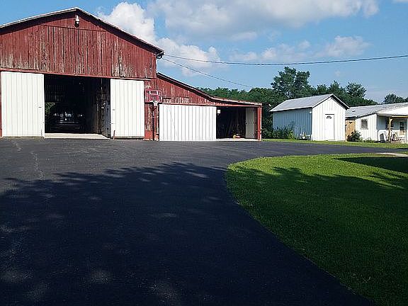 2 bedroom with 2 full bathrooms. 2 walk in closets. Large kitchen with Island and pantry. Lots of cabinets with new countertops. Central air and natural gas heat. Property has blacktop driveway, large barn, small shed and another large building. There is also a small green house and chicken coop.