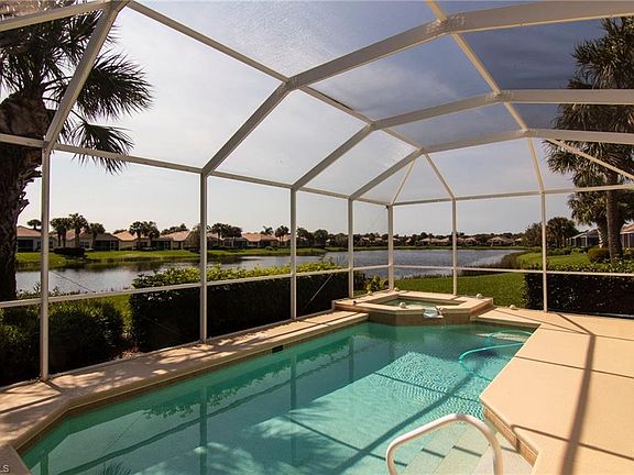 Get ready to enjoy the breathtaking sunsets from this SOUTHERN EXPOSURE lakefront pool home with spa. The pool and spa can be enjoyed year round with it's "Fafco" solar heater. The magnificent view and outdoor space captures what Florida living is all about. Perfect for entertaining the home has an added over sized paver drive way and is also nestled close to the end of a cul da sac making for a very quiet neighborhood. As you enter the home through the front screened entrance way you will notice the freshly painted interior and the updated kitchen. The kitchen is light and bright and has upgraded stainless steel appliances, quartz counter tops, decorative subway back splash tile and soft close white panel cabinets. BONUS the air condition was replaced in 2018! Sandoval is known for its lush tropical landscape, beautiful lake views, walking, jogging and bike baths and amenities that capture what low maintenance Florida living is all about. Set up your private showing today to experience this spectacular home.