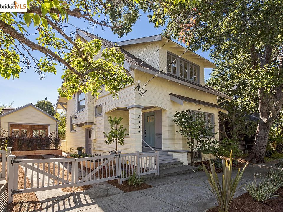 Step into an Elmwood classic nestled next to a majestic oak tree and a gorgeous tree-lined street. This 1914 Berkeley shingle home boasts 3 bedrooms, 2 bathrooms, a private backyard and a separate ADU. As you enter, you'll be greeted by original in-laid floors and tray ceilings that exude character and timeless appeal and an open living and dining area anchored by a fireplace. Also on this level, find a convenient full bathroom and laundry area. The kitchen has been thoughtfully updated with new appliances, new tile and countertops. It also features a sunny corner that's perfect for casual dining, working from home, or simply sipping your morning coffee, and it seamlessly opens up to a lovely, very private backyard. You can also grow your own organic herbs or vibrant flowers in the raised beds on the side of the house.The 3 bedrooms are all tucked away upstairs for your privacy and comfort In the back, the ADU is fully equipped and offers a complete kitchen, bathroom, and laundry facilities, as well as a loft area, making it an ideal option for guests, extended family, or even rental income. The location could not be better: you are within 0.5 miles of College and Ashby, where all the cool cafes, movie theater and restaurants are, and close to both Ashby and Rockridge BART.