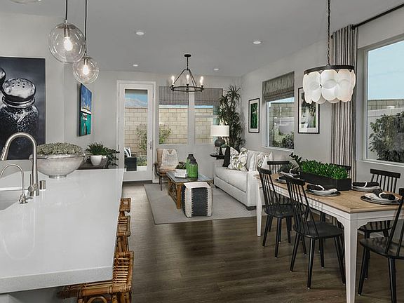Plan 2 offers the space you need to gather as a family or spend the weekend hosting extended family and friends. With an open concept living, dining, and kitchen layout, you'll make everyone feel cozy in your new space. The spacious kitchen provides for additional cabinets as well as a walk-in pantry for a plethora of storage space. The gathering room leads out onto your spacious covered outdoor living area - the perfect place to enjoy the beautiful California weather. Retreat upstairs to the second floor, to your beautiful owner's suite, designed for ultimate relaxation with a spacious shower and separate soaking tub. Additionally located on the second floor is another entertainment space for your family as well as two secondary bedrooms or guest bedrooms complete with a full bath, and laundry room. Home amenities include an attached two-car garage, beautiful white shaker cabinetry, granite countertops, whole-home air filtration, and other designer touches.