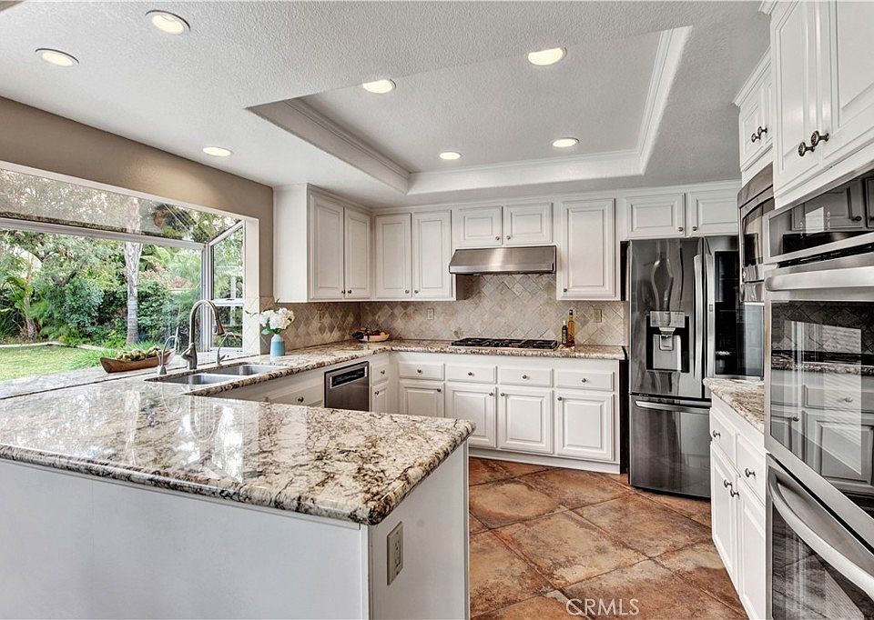Welcome to this stunning East Yorba Linda property, boasting an irresistible blend of curb appeal, modern elegance, and spacious living, all feeding the best schools in North OC. This home offers the convenience of a highly desired downstairs bedroom and bathroom combination, ideal for guests or multi-generational living. As you approach, you'll be greeted by the inviting ambiance of a meticulously landscaped rose garden and charming brick accented circular steps leading to a welcoming front porch. Step inside to discover a beautifully remodeled interior featuring vaulted ceilings and a seamless flow of space. The formal living room, adorned with gorgeous hardwood flooring, seamlessly connects to the expansive formal dining room, perfect for hosting gatherings and special occasions. The heart of the home lies in the meticulously remodeled kitchen, which opens to the family room, creating a perfect space for both cooking and entertaining. High-end granite countertops, stainless steel appliances, and ample cabinetry highlight the kitchen's functionality and style, while a garden bay window offers delightful views of the expansive backyard. Kitchen perfectly opens to the Family room which is anchored by lovely brick fireplace & hearth, & built-in bookshelves. Upstairs, the luxurious Master Bedroom Suite awaits, featuring a spacious retreat with a cozy brick fireplace and access to a newly built balcony offering serene mountain views. The master bathroom is a true sanctuary with quartz countertops, Jacuzzi tub, separate shower, and fabulous walk-in closet. Two additional generously sized bedrooms upstairs, along with a beautifully remodeled Jack & Jill bathroom, provide ample space for family and guests. Outside, the entertainer's dream backyard beckons with lush greenery, a 12-seater above ground spa, a private gazebo, and a tranquil pond with a flowing fountain. The expansive patio offers the perfect setting for outdoor gatherings and relaxation. Additional highlights of this remarkable property include a 3-car garage with built-in cabinetry, newer American Standard HVAC, gated RV parking, dual pane vinyl windows, plantation shutters, 75 gallon water heater, and a central vacuum system. And don't forget the world class schools: Bryant Ranch Elementary, Travis Ranch Middle School and highly desired Yorba Linda High School! With its prime location in Yorba Linda, this home is a must-see for those seeking the perfect blend of luxury, comfort, and convenience.