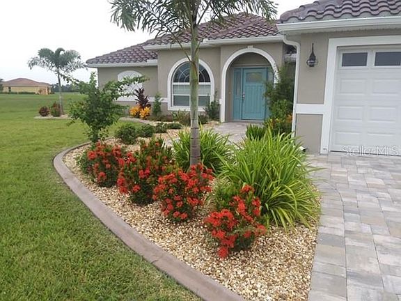 Newly built, MOVE IN READY, SALTWATER POOL HOME available NOW! WHY WAIT to build when you can move right in to your custom built new home? SHOWS LIKE A MODEL HOME! *TO KEEP THE LOOK OF THE HOUSE FURNITURE AVAIL TO PURCHASE SEPARATELY*. Open floor plan integrates living, cooking and dining areas and is designed to allow ample space for entertaining your family & friends. Stunning GRANITE CHEF'S ISLAND with plenty of seating in kitchen is at the heart of the home. Enjoy upgraded FINGERPRINT RESISTANT-STAINLESS APPLIANCES including CONVECTION OVEN, custom backsplash, under cabinet lighting, pantry, soft close drawers and doors + large granite sink! "WOOD LOOK" PORCELAIN PLANK TILE throughout main living/dining with diagonally laid tile in bedrooms, vaulted ceilings with crown moulding in main living space and master bedroom. The master bath is well appointed with "his & hers" sinks, walk in shower with glass enclosure and master bedroom has WALK IN CLOSETS. Custom ceiling fans with lighting in all rooms! Lanai opens up through sliding glass doors featuring a private, greenbelt view from your EXPANSIVE BRICK PAVER partially covered and screened patio with swimming pool. The lanai offers lots of additional seating options. Front exterior features a brick paver driveway with EXTENSIVE LANDSCAPING including palms and tropical plants bedded in washed stone with concrete curbing! Burnt Store Lakes is located next to our areas largest Marina. Enjoy special access to their amenities such as dining, fitness and golf.