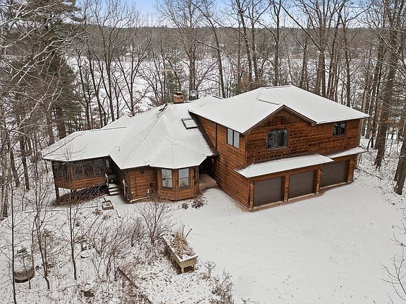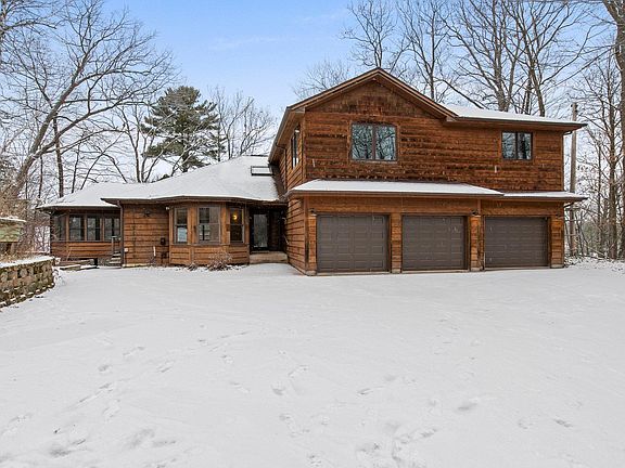 OPPORTUNITIES await you with this 5 bedroom 4 bath home located on a beautiful wooded 1 acre lot on premier Beaver Dam Lake and also close to the Cumberland golf course and new Cumberland Hospital. Over 4,000 square feet multi-level home with two gorgeous woodburning fireplaces and beautiful wood decking that grant a magnificent lake view. Vacation sand beach awaits you and crystal clear water for your summertime fun. Complete primary suite level with door leading out to lakeview deck. Lower level family room with bar and hot tub area. Upstairs you have a large bonus living room or play area. Take your pick of home office space anywhere in the home. Fantastic relaxing enclosed porch just off dining area. 22x36 3 car heated garage to complete your storage. This home not only gives you lots of space but an opportunity to put in your own touches and kitchen expansion if you choose.