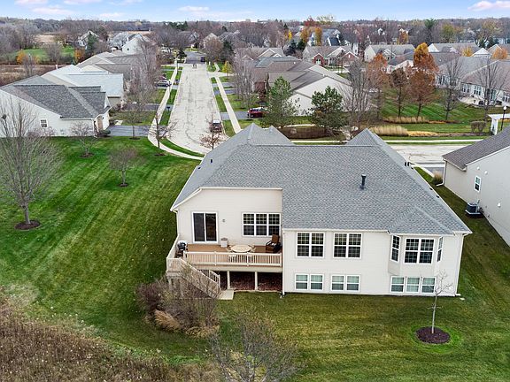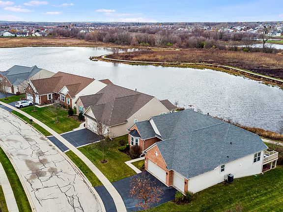 " Location - Location - Location" Monterey Model on Forest Preserve Pond across from Park with Open space adjacent. 3 Bedrooms, 3.5 Baths & 3 Car garage. Huge Kitchen w/walk in Pantry, Quartz Cntr Tops, 42" Cherry Cabinets, Hrdwd Flrs and a Brkfst Nook that opens to a Composite Deck overlooking the Ponds. Dining Rm, Family Rm w/ Frplc, Sun Rm, Den, Ldy Rm w/ Splash Tub & Cabinets, Utility Rm & Pwdr Rm. Bay Window in Primary & Second Bdrms + WIC. All Window Treatments, Appls & Lighting Fixtures Stay as well as Sprinkler System & Security (New Roof 01/2024). Full Finished "English" Basement w/ Rec Rm, Huge Sewing-Craft-Game Rm as well as Storage Rm & Workshop, while Bdrm has an extra Lrg WIC. Terrific for entertaining and enjoying Nature in this Gated, Del Webb Community. Come For The Fun!