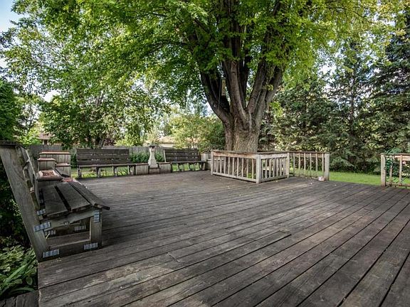 DESIRABLE WOODCREST LOCATION! This ranch style home features 3 bedrooms & 2 baths on main floor, fireplace in living area, kitchen-eating, large deck & extra garage for the hobbiest. There is a dry bar downstairs, built-ins, laundry, & 3 more bedrooms possible (with out egress windows) & a bath. Tree lined street & no specials. This home could be your home!