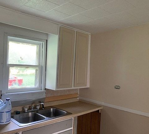 Roof only 7 years old, Well pump only 8 years old.All new windows except for 2 which are there and ready Big 1/2 acre lot.Fenced in yard. Low Taxes 2 small bedrooms 1 bath. hardwood floors.