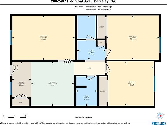 This 956 square foot apartment home has 3 bedrooms and 2.0 bathrooms. This home is located at 2437 Piedmont Ave #208, Berkeley, CA 94704.