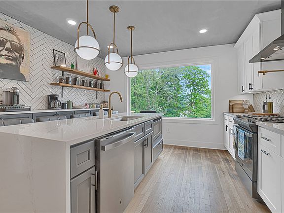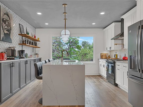 Not a cookie cutter reno, this house is a masterpiece! A gallery inspired foyer is waiting to showcase your art. The true gem is the fabulous chef's kitchen; with two tone shaker cabinets, black slate appliances, herringbone subway tile, coffee bar & waterfall quartz countertops, your kitchen is sure to evoke envy. Look out to your backyard through a massive picture window. Exposed brick, floating shelves & built-in cabinets give the sizable living room unique touches. The main floor is completed with a half bath & laundry. The second floor ensuite is sure to steal the show, the bath wows with a massive shower, oversized soaking tub, rainfall showerhead & double vanity. The second floor features two more spacious bedrooms & another full bath. The top floor suite is filled with creative touches; in the bath a rainfall shower head pours between beams artfully painted to look like steel. New concrete parking pad for 3-4 cars. Currently set up to be utilized as an AirBnb.