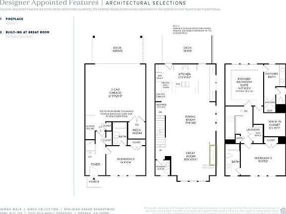This end unit Spalding is a gorgeous three-story townhome designed for the way you live. Preparing meals will be a breeze with ample counter space and a sprawling kitchen island, all without missing out on family and friend conversations in this open-concept design. Enjoy some sunshine on the spacious deck located off the kitchen, optimized for outdoor living. Relax after a long day and unwind in the elegant primary bedroom suite with a spacious walk-in closet and a relaxing primary bath with a dual-sink vanity and a luxe shower. An additional bedroom on the ground level offers endless opportunities to personalize your home with the potential for a guest suite, an office, or even an exercise room. Don't miss out on this home at Rowan Walk, located just minutes from Truist Park and The Battery! Schedule your visit to the community to learn more about this home today. Disclaimer: Photos are images only and should not be relied upon to confirm applicable features.