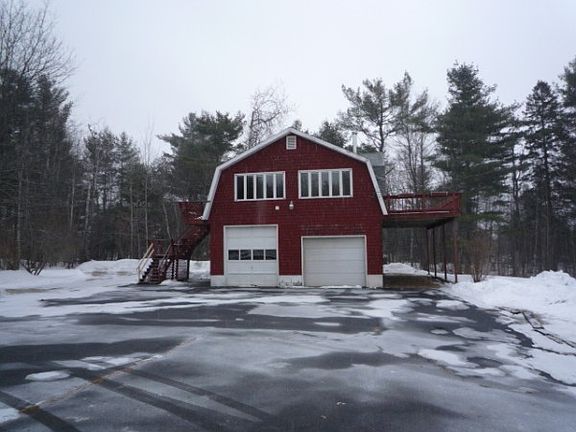 1 of a kind rental property. This Gambrel style has an oversized 2 car garage with 2 storage rooms and an large 2nd floor apartment above. Sits on 2 acre lot with huge lawn space including garden spot! This feels like it's in the country but is right in the middle of Hermon center backed up to Hermon High school. Apartment has large double living room, kitchen with dishwasher and breakfast bar & stools. Good size bedroom with 2 closets and full bath. Also has sliding glass door to full length deck. Has 2nd deck with stair to paved parking and gravel driveway. Price is $1295 + utils single or $1325 for double occupancy, but does include water and sewer. Does have large lawn space and long driveway so tenants need to be aware they have to keep mowed and plowed. Garage is heated and has small bonus room for storage but isn't fixed up enough to be 2nd bedroom plus has to go out side to access main living area on 2nd floor. Pet friendly and available immediately!