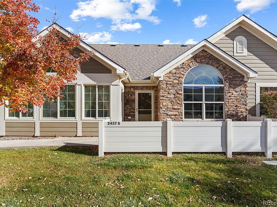 This is your chance if you have been waiting to live in the Villas at Pleasant Valley. Now is your chance to own this elegant patio home. Enter this fully main-floor home and enjoy the flooding light pouring through the vast windows. Open concept for the most inviting gatherings. Kitchen is spacious for all the friends and family to hang out while entertaining. Cabinets and pantry that boast plenty of storage space. Spill out into the large living/family room area with plenty of space for comfy furniture. Warm up next to the inviting fireplace on those cold winter nights. The bright, cozy sunroom is perfect for a separate dining room or to chill out and read a great book. The second bedroom is perfect for a guest room, next to the 2nd full bathroom. The office is spacious and could be a 3rd guest room with no closet to host guests for too long. The primary bedroom is vast with room for larger furniture. Generous primary bathroom and walk-in closet. The front porch is the perfect retreat to sip your morning coffee or evening glass of wine and a chance to chat with the neighbors as they stroll around. Just steps from the clubhouse and pool. This community is close to shopping, trails, Ute Creek golf course, and easy access to town or out to the highway. Big storage room next to the laundry area. The 2 car garage also has an attic for all your seasonal items. Come see it today! Home is virtually staged.