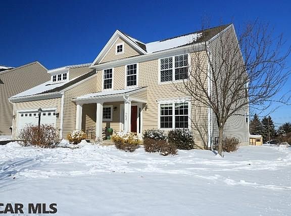 Sleek & sophisticated 2-story in the popular Foxpointe subdivision. A flowing floor plan of space & function, designed for everyday living or entertaining. Welcoming 2-story foyer with an abundance of natural light from multiple windows, hardwood flooring & an oak staircase. Stylish eat-in kitchen with maple cabinets, Corian countertops, tile backsplash, stainless appliances, practical island & separate dining area with slider to the rear deck & patio space. Spacious family room with cozy fireplace, convenient 1st floor laundry/mudroom leads to the attached 2 car garage. Upstairs you will be delighted to find a relaxing master suite with 2 walk-in closets, full private bath with a dual vanity, tile flooring, walk-in shower & separate water closet. There are 3 additional well-appointed bedrooms & a large hall bath with a dual vanity. Additional highlights include fresh professional interior paint, natural gas forced air heat & central air conditioning.