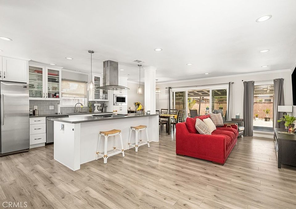 Welcome to your new home in West Anaheim. Located in a cozy neighborhood, this updated single-level home is turnkey. Moment you walk in you are greeted with an open concept floorplan. Kitchen on the left overlooks the Family room, and the large window lets you see guests as they walk up to your new home. Oversized Kitchen Island is perfect for entertaining guests, with the Dining area and inviting Backyard for larger gatherings. Stainless steel appliances and updated cabinetry provide a cohesive design style and ample storage space. If that is not enough, there is also a pantry with space for Breakfast nook. Head towards the hallway you will find three Bedrooms, with one having direct access to the remodeled Bathroom with Walk-In shower tiled up to the ceiling. Step outside into the Backyard and you have beautiful pavers, artificial turf, and an above-ground Spa. The potential here is endless with the flexibility you will have. Large sideyards have a storage shed with additional access to the Frontyard. Two-car garage with Laundry inside, as well as another door leading to the Backyard. Location is Prime as it is in close proximity to the 91 & 5 Freeways, shopping for Groceries and Restaurants, and is literally a few minutes from a golf course!