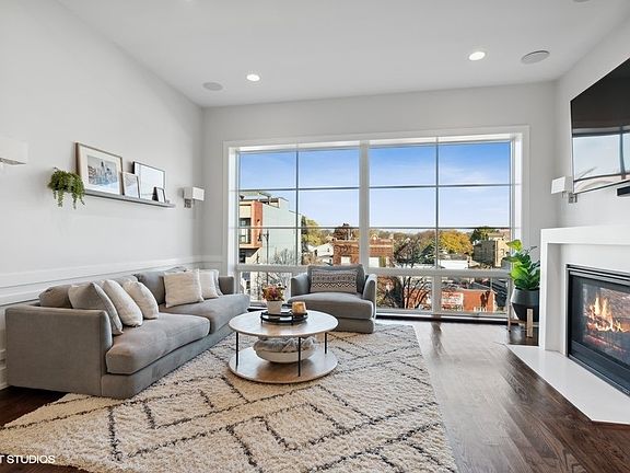 Great value! Top floor two bedroom two bathroom duplex style home with floor to ceiling windows in hot North Center! Natural light pours throughout the open concept living room + dining and kitchen. Entertain friends and family in your gorgeous high end kitchen which boasts custom cabinets, quartz countertops, stainless steel Bosch appliances. Retreat to your Massive primary suite that includes a walk in customized closet, spa like bathroom complete with dual vanity, separate shower and Jacuzzi tub. Second bedroom is a great size and there is plenty of room for both a guest and office should you require. Expansive shared rooftop garage deck with grill and tons of seating. Washer dryer in unit. Garage parking spot included in price. You can see popular and active Revere Park from the window. Enjoy all that North Center, and Roscoe Village have to offer. Convenient to Lake Shore Dr, 90/94. Seller wants to close on or before December 14th!!!